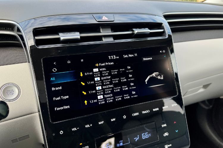 The 10.25-inch Navigation multimedia screen with Dynamic Voice Recognition is responsive and easy to use. And I'm super impressed with the natural conversation provided by the voice system. Maps looks great as does the backup camera quality. Hyundai's multimedia system is compatible with Apple CarPlay and Android Auto. It's also equipped with HD Radio and Bluetooth. You can also look up nearby gas station info and so cool for a weather buff like me - you can access a weather dopplar radar map! Other features include Quiet Mode and Valet Mode, but not Sounds of Nature.