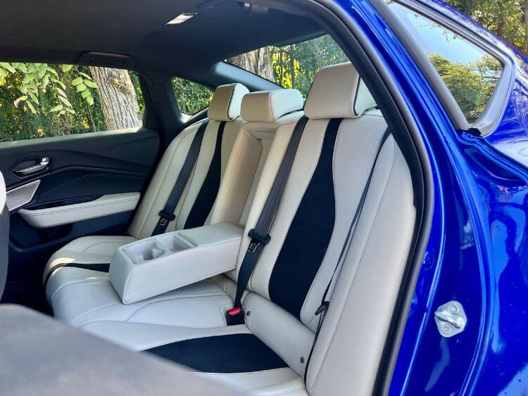 The 2nd row is roomy for passengers, with cushiony seats, nice door panels, a drop-down armrest with cupholders and USB-C ports (there are 2 up front as well.)
