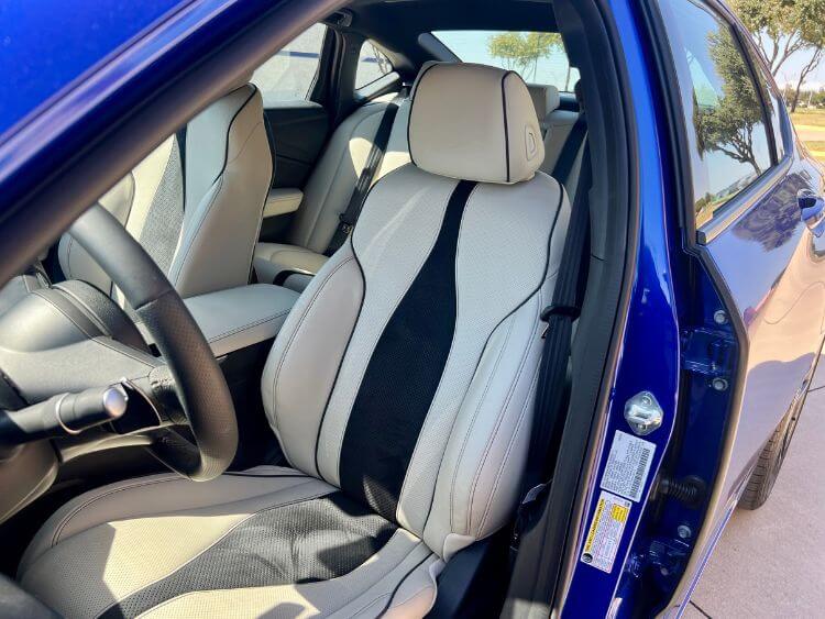 Things that especially impress: 16 way power leather-trimmed sport seats with ultra-suede inserts. Yes, these are some of my favorite seats ever. Both seats are heated and ventilated, and surprise! Both also have a power thigh extension and side bolsters.