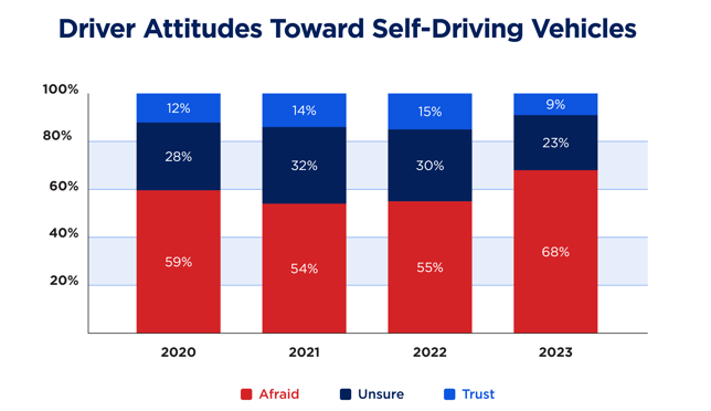 Worried about self-driving cars? If so, you're not alone. Fear of self-driving cars is on the rise, according to a new survey from the American Automobile Association (AAA).