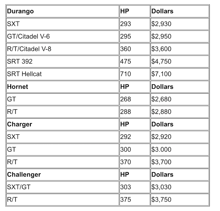 The industry-exclusive program that rewards enthusiasts who crave more power kicked off once again on August 6th. It gives customers $10 per horsepower cash allowance toward the purchase of 2023 model-year Dodge Charger SXT, GT and R/T models, 2023 Challenger SXT, GT and R/T models, as well as the entire 2024 Durango lineup and the Dodge Hornet.
