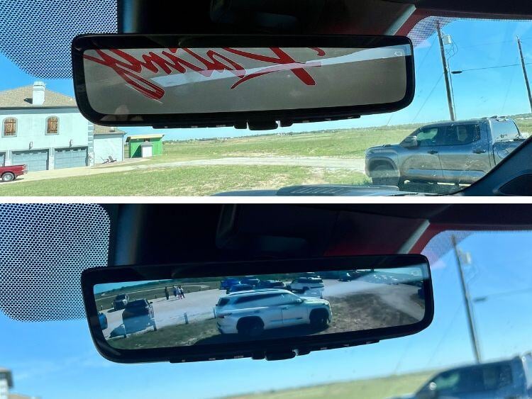 Then it will stream a live view from behind your trailer on the digital rearview mirror. You can also see the camera view on the multimedia screen.