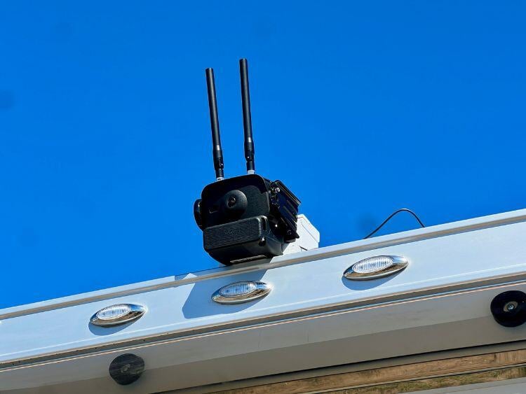 While you install the pre-paired camera to your trailer yourself, the vehicle itself gets factory installed shark fins for the WiFi system.