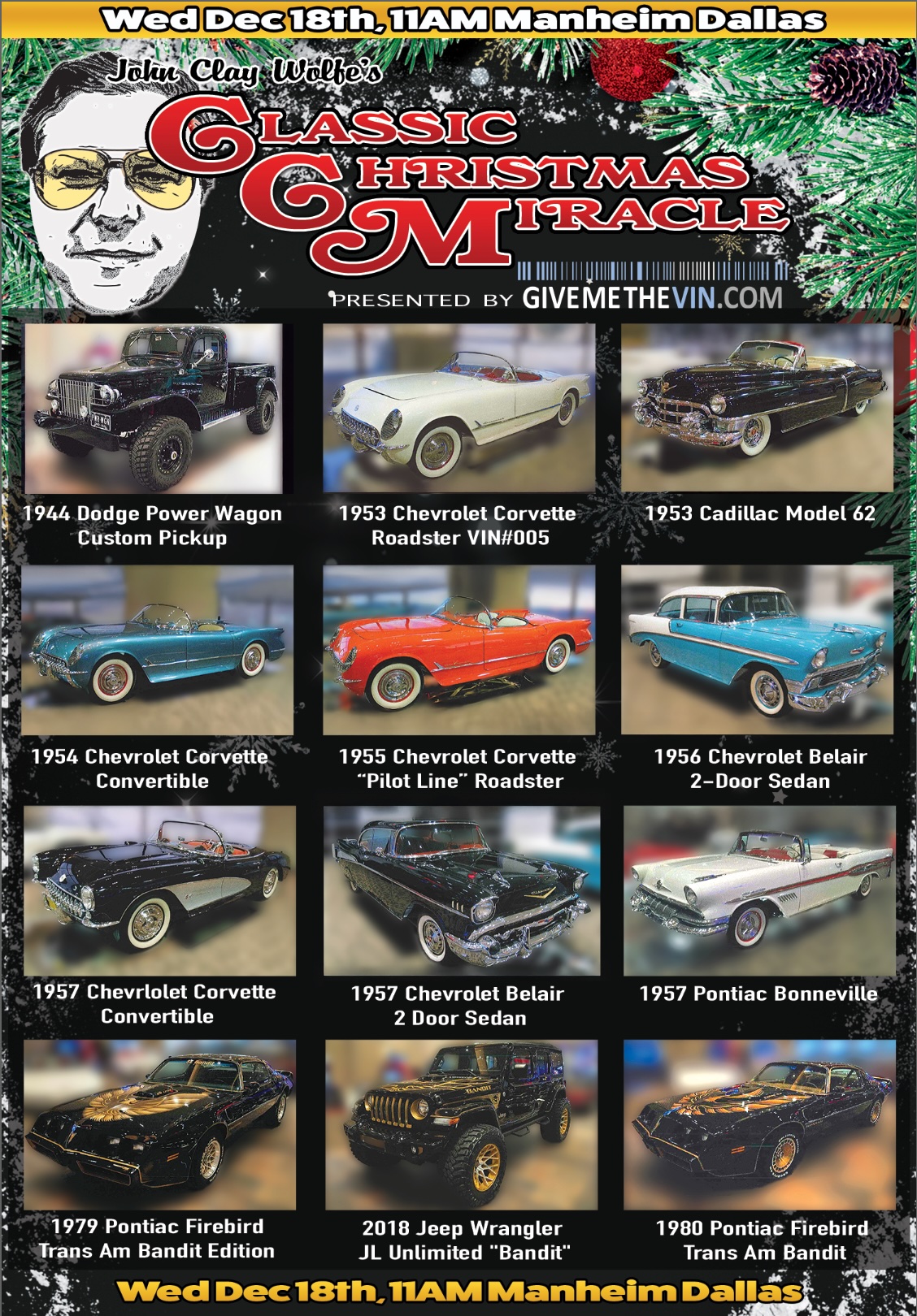 My friend John Clay Wolfe, president and founder of GiveMeTheVIN.com (GMTV), the nation’s largest vehicle wholesaler with nearly $2 billion in annual revenues and an A+ rating with the Better Business Bureau, recently made the largest auto acquisition in the company’s 30-year history. Wolfe discovered a treasure trove of 42 rare, museum-quality classic cars valued in the multi-millions. Typically, cars at this level are sold at Barrett-Jackson, Mecum, RM Sotheby’s and Broad Arrow auction houses where they charge buyers up to 12 percent in premium fees. However, Wolfe will sell the entire collection at the John Clay Wolfe’s Classic Christmas Miracle auction on December 18 at his personal arena inside Manheim Dallas, with minimal buy fees. The auction is for car dealers worldwide who join the bidding via simulcast or in person; however, private buyers can also participate by contacting a dealer to bid on their behalf.