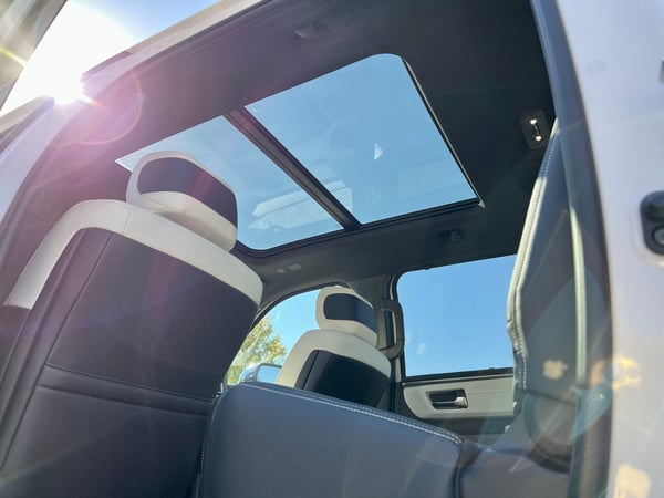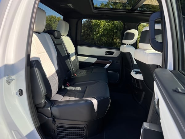 The Capstone's exclusive two-tone white and black leather interior impresses with its dark American walnut wood-grain trim with an open-pore finish on the center console and passenger-side dash. Capstone is also the only Tundra grade with acoustic glass on the front doors for more exterior sound deadening.