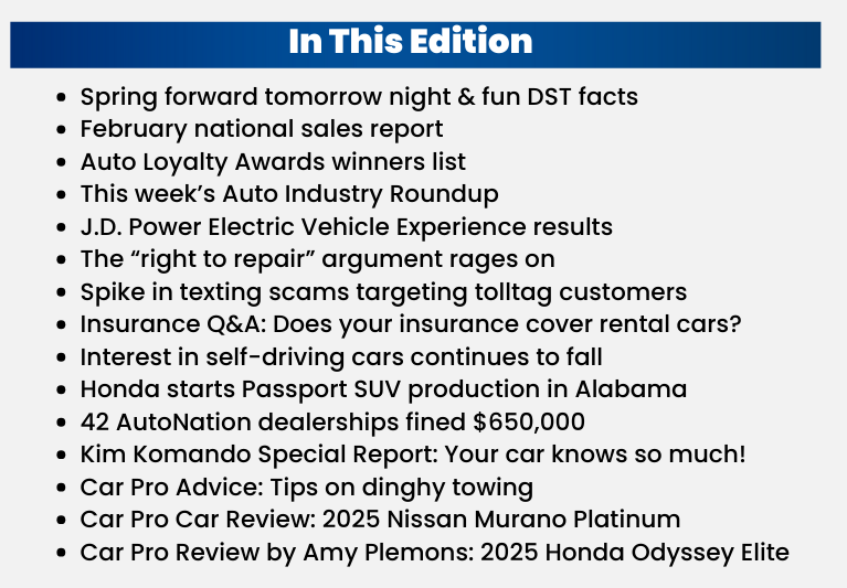 Also below is week 3 of my Auto Roundup series. This is only available to newsletter subscribers, not online anywhere. I take the top automotive news stories of the week, tell you about them, and offer up some commentary on each one. The response has been incredible, so thank you. I also have the February national sales results for you, and a scam warning for those people with toll tags in their car.