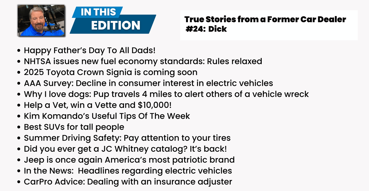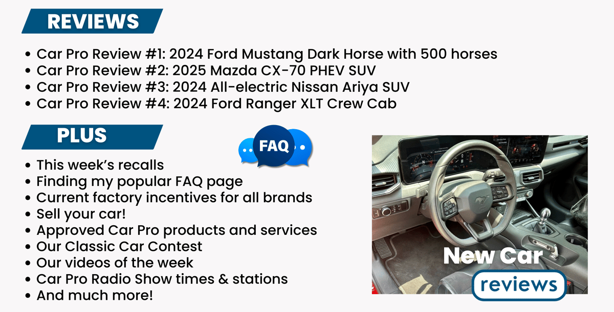We so appreciate all of you who take this newsletter and listen to the show every week. We know that without you, there is no Car Pro Radio Show. So always let us know when we can help you. If you have not been there lately, take a look at our website, www.carpro.com, it changes all the time!