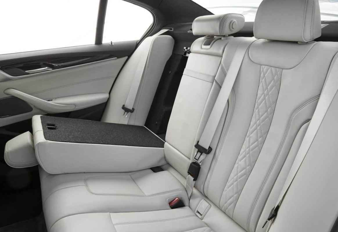 In the center console, there is a wireless charging station for your phone and also the key fob for the car. The 530 has a large sunroof, a very nice sized back seat that folds down, side window shades, and a power rear sunshade.