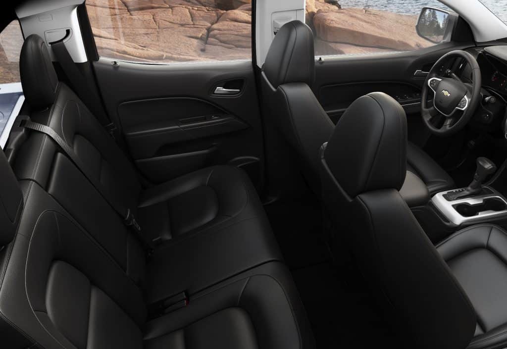 Everything inside operates by an 8” color touch screen that lets you choose a suite of apps, including one that turns the inside of the cab into a Wi-Fi hotspot. Front seats are bucket with a center shift transmission. The seats are comfortable and appear to be of high-quality materials. The Colorado is pleasing to look at and drive, and it is very quiet inside, even at highway speeds.