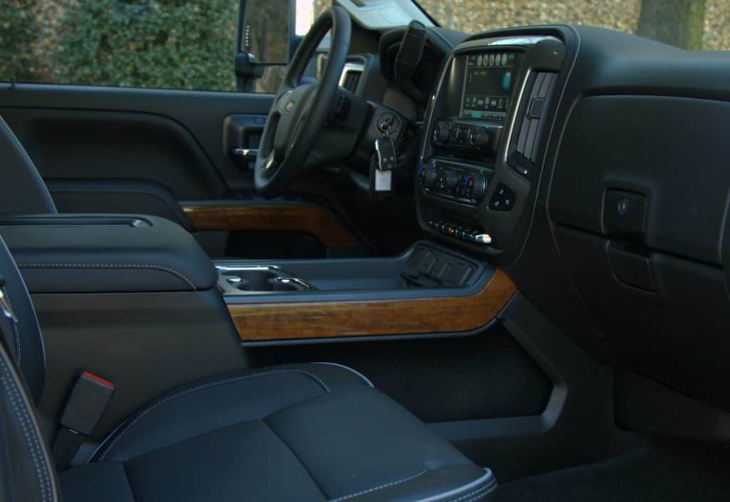 This truck has a huge center console with a built-in cell phone charger, handy cup holders, and a large storage area. Chevy opted to leave the transmission shifter on the steering column to allow for all the front seat storage.