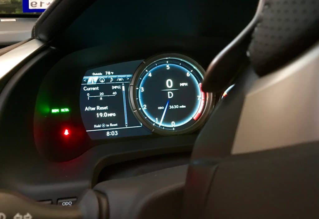 I'm a big fan of Lexus' easy to read colorful, bright LFA-inspired instrumentation cluster. But what really steals the show inside is a huge 12.3-inch split-infotainment screen. Wow does it have outstanding resolution and color. Maps look great as does the rear view camera view and an optional 360-degree panoramic camera view of your surroundings along with safety features like Lexus Park Assist.