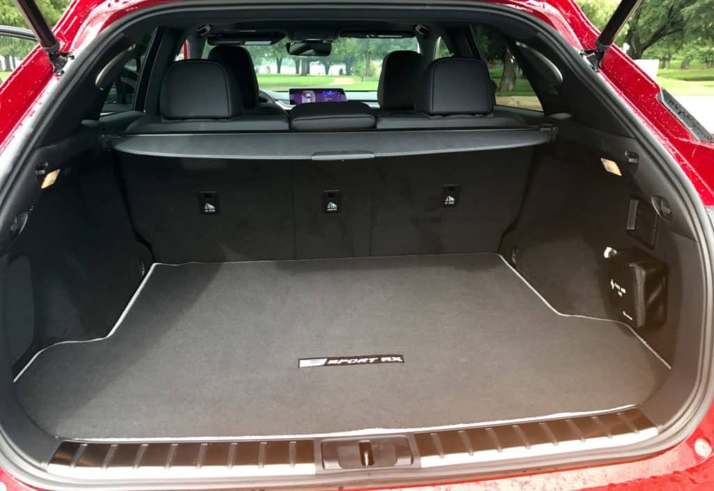 The RX is also equipped with expected features like dual-zone climate control and heated/cooled front seats. Legroom is fine in the back and there is plenty of trunk cargo space. The rear seats, of course, fold down for more of it.