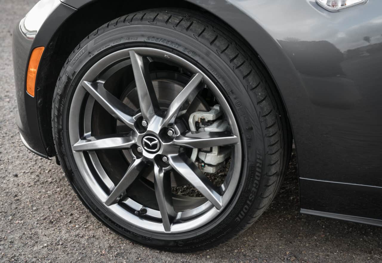 Lean and low, the Miata hunkered down on smallish 205/45 tires wrapped around eight-spoke 17-inch wheels.