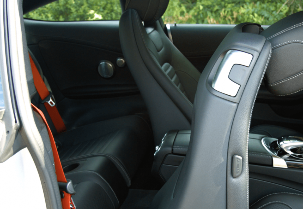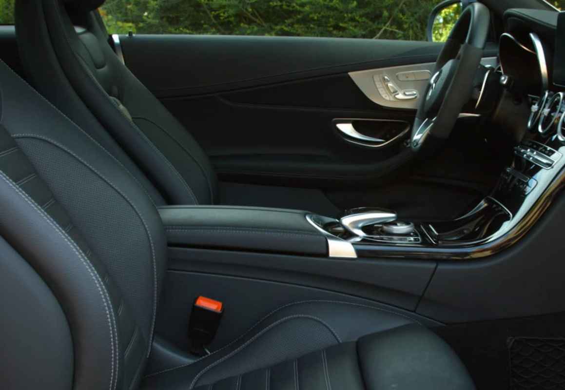 When you open the large doors of the C43 coupe, you see a crafted interior that exudes pure luxury. The red seatbelts draw you in as you sit in the ultra-comfortable seats.