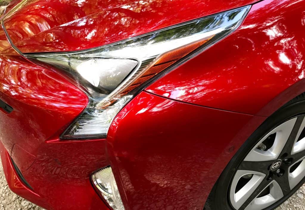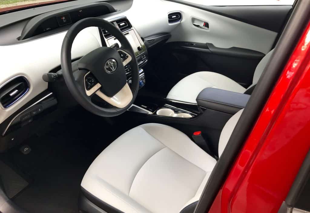 Toyota overhauled the Prius in 2016 to try to make it sportier and more mainstream in an attempt to shed its tree-hugger image. But you still won't miss it for a Prius, especially coming from the back. Its hatchback trunk, with a unique rear bumper, definitely makes a statement. In the front, its nose is sharp with creases. Without a doubt, I loved the gorgeous special order color Hypersonic Red, a $395 add-on. It really turns the Touring into a striking car that will get you noticed for the right reasons. All Prius’ come with bi-LED headlights and LED daytime running lights and taillights. The Touring trim adds fog lights, nice-looking 17-inch 10-spoke Alloy wheels, heated outside mirrors and rain-sensing variable intermittent windshield wipers.