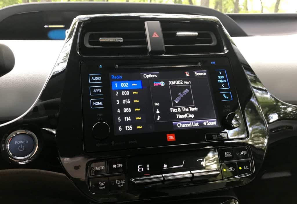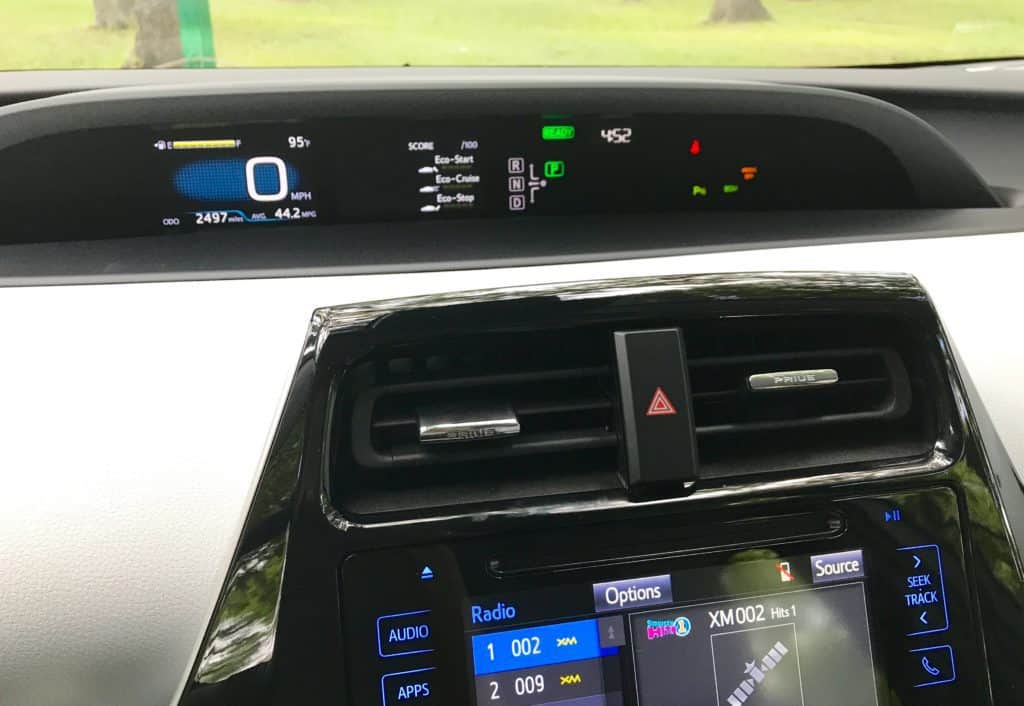 I was surprised at how well the Prius Four Touring handled. Toyota did a great job with the drive, which has everything to do with the fact Toyota started building it on its new global platform in 2016. It rides closer to the ground, and the lower center of gravity improves handling. The Prius is powered by Toyota's 1.8L 4-Cylinder Engine with Hybrid Synergy Drive system and an electronically controlled Continuously Variable Transmission. Together the engine and hybrid battery pack deliver 121-horses. The double-wishbone rear suspension system took on potholes well. All in all, a smooth ride. There are four driving modes: Normal is what you get when you power up. The gas and engine motor swap off when needed to save gas and cut emissions. Power mode ups the throttle for more pickup and go. Eco mode is more fuel efficient but you lose some A/C performance. EV mode switches to battery-only. But it will only take you a short one-half mile under certain conditions.