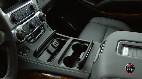 There is a large center console and armrest that has a built-in cell phone charger, a nice touch for sure. Up on the dash is Chevy’s MyLink screen that operates the Bose sound system, navigation, Bluetooth, real-time traffic and weather, the rear seat entertainment system, and the Apple CarPlay and AndroidAuto connections. One cool feature is there is a hidden compartment behind the touch screen operated by a push of a button.