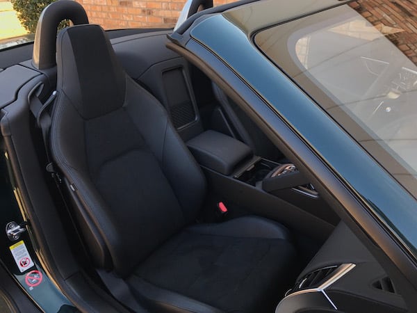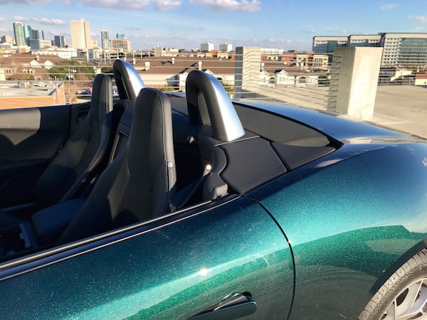 One of the great joys of this car is, of course, the drop top. Road noise actually isn't too bad even though it's a cloth, not a hard top. The power top folds away effortlessly as you hold down the button in the center console.