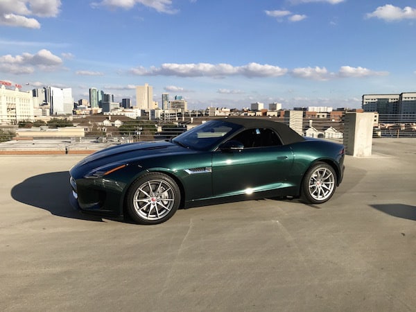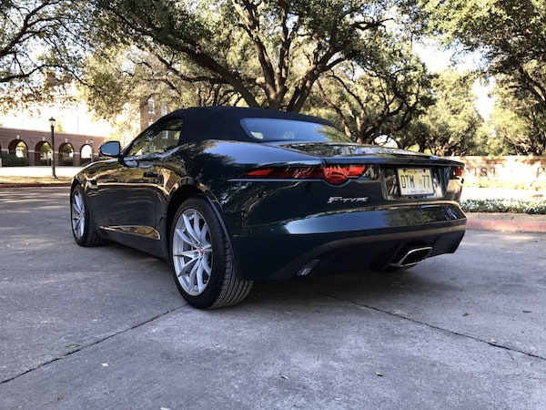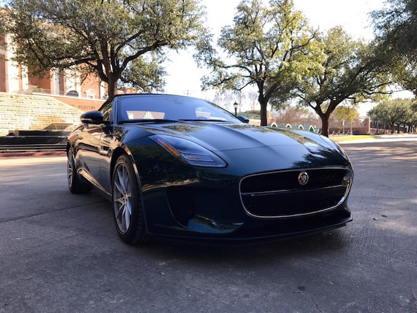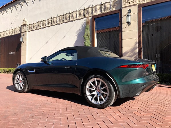 I'm quite smitten by the F-Type after spending a week in its well-designed cockpit with incredibly comfortable suede bolstered sports seats. But it's the sporty performance and stiff handling that really makes it hard to say goodbye to. And here's where it gets really interesting. There's not the usual V6 or V8 under the hood of this one. My British Racing Green beauty comes with the F-Type's first-ever 2.0L turbocharged 4-cylinder engine.