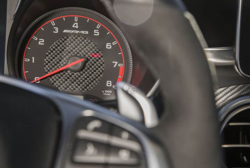 The interior is spectacular, especially the highly bolstered Recaro seats that feature power thigh extensions. The gauges are easy to read and in the middle are driver settings that operate from the flat-bottomed steering wheel. That is where you’ll find the wonderful AMG Performance menu page. There is also an easy to read head-up display with speed limit sign recognition.