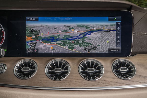 As you sit behind the steering wheel with controls, you see two extremely vivid 12.3” screens. Right in front of you are the gauges and driver info center, then in the middle of the dash is the COMAND infotainment screen. This is where you operate the entertainment, navigation, comfort and convenience features, and customizable vehicle settings.