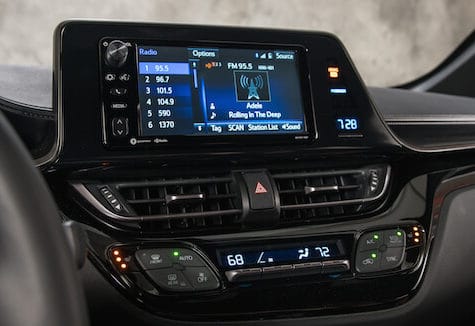 The C-HR has one of the better cockpits among the variety of small hatchbacks and crossovers. Toyota calls the center pod of controls the MeZone. There is a 7-inch screen with switches and knobs that are easy to reach and use.
