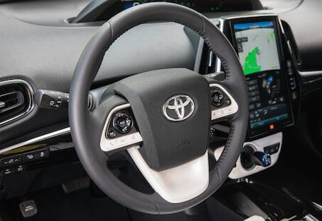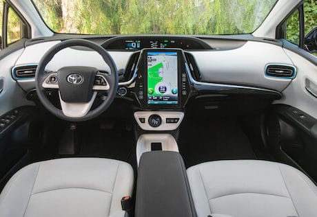 As with other Prius models, the Prime displays all of its driver display info in the center of the dash, instead of behind the steering wheel. Look down and you see a large 11.6-inch HD tablet-like display which I found to be pretty reflective. I also found some of the touchscreen buttons rather small to operate. However, the cleanly designed area around the tablet featured user-friendly buttons. You can also use controls on the sofTex trimmed, and in this case heated steering wheel.
