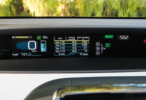 Admittedly I have a lead foot that lends itself to higher-horsepower vehicles. So it may not be fair to say I found the Prime’s 121-horsepower and engine revving to accelerate uninspiring. But that was my experience. I prefer to feel more confident pulling into traffic. Oddly, I was more enamored with the similarly powered 2017 Toyota Prius Four Touring I reviewed last year, which weighs slightly less.