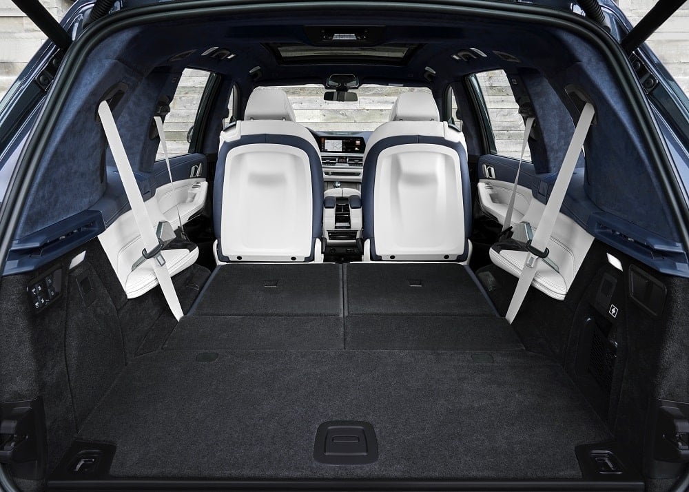 There is a split tailgate in the rear, and you can lower the X7 from there for easy loading. Cargo area is fairly limited if all the seats are up.