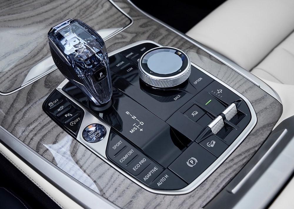 To the right of the shifter is the round controller for the center screen, which allows you to scroll through everything. Under it is the ride height control and hill descent. The iDrive 7.0 works quickly and is not hard to learn.