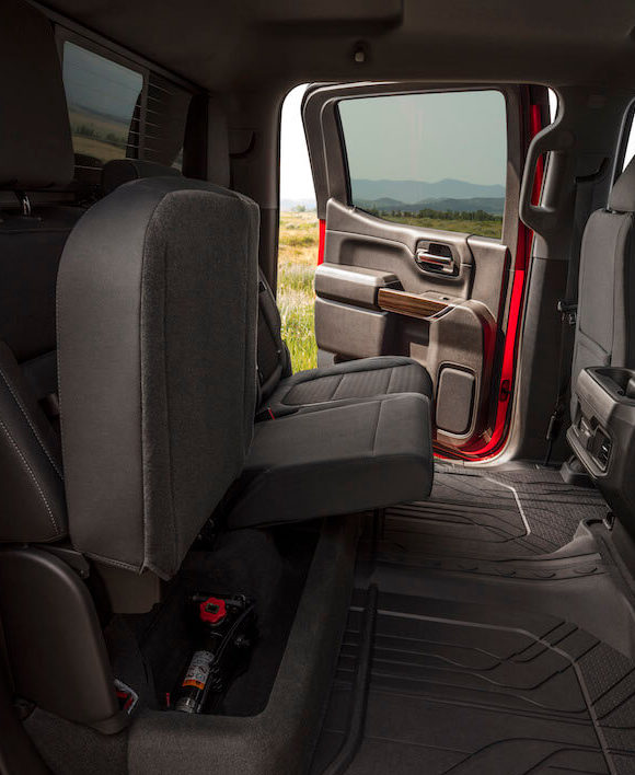 I felt at home in the cabin, it is reminiscent of the last generation Silverado. The touchscreen is easy to operate, the gauges and driver info readout is easy to see, and they moved all the lights and 4-wheel drive controls to the left of the steering wheel. This truck has storage, cup holders, and cubbyholes everywhere, including dual glove boxes. Fold the back seat up and you have a ton of cargo area.