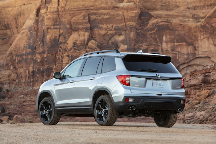 The combative Passport passed on the Pilot’s conventional alloy wheels, opting instead for black five-spoke 20-inch wheels wrapped with 265/45 tires – the tiresome auto-industry equivalent of a sleeve of tattoos.