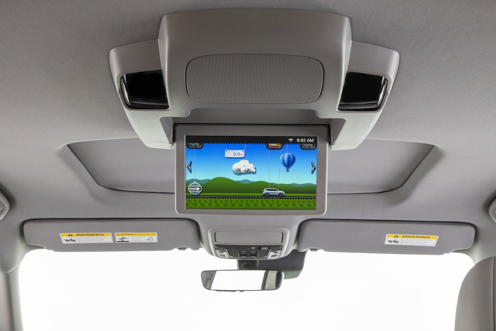 Also, if you’re not too busy texting, you can charge most cellphones on a pad at the front of the console while the soccer team enjoys Blu-Ray/DVD videos with wireless headsets – if they’re not already watching them on their tablet-thingies.