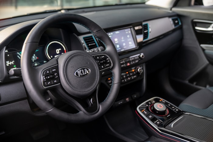 Horizontal panels beneath it provided knobs and buttons for the Niro’s audio and climate-control systems.