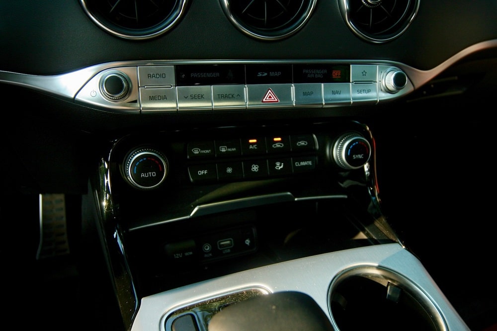 An 8-inch touchscreen with navigation and a backup camera also hosts Kia’s UVO infotainment system which I found responsive. It’s equipped with Apple CarPlay and Android Auto. The GT2 comes with an upgraded 15-speaker 720-watt Harman Kardon Premium Audio system. Dual-zone climate control and rear vents are standard across the lineup, as are front and rear power outlets with USB chargers. Wireless charging is new to the GT2 this year.