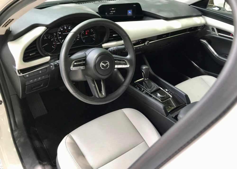 Mazda is known for delivering more of an engaging, sharper, ride than others in its class and the Mazda3 lives up to those expectations nicely. It’s equipped with Mazda’s G-Vectoring Control Plus designed to offer smoother, more precise control. It’s also equipped with a sport mode for the most engaging dynamics. My test model is forward-wheel drive but Mazda’s i-ACTIV AWD is an option on the top three trims. Overall, the Mazda3 delivers good, precise and responsive steering and handling for a compact sedan. The ride quality is on the firmer side. Also, cabin quietness improves thanks to the use of more sound deadening materials.