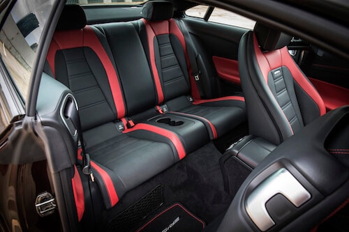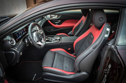 The Burmeister sound system is spectacular, and the speakers in the door are a work of art. The E53 has good headroom, especially in the front seat. Mercedes makes it easy to get into the back seat with power sliding front seats, and there is good legroom, especially for a coupe. The trunk is more than ample.