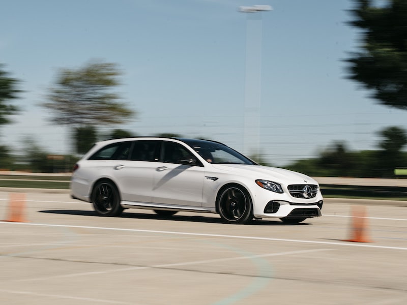 My E63 review wagon comes loaded with popular standard features like a panoramic power sunroof, keyless entry, collision prevention, blind spot monitoring, lane keeping assist, a head-up display, and active parking assist.