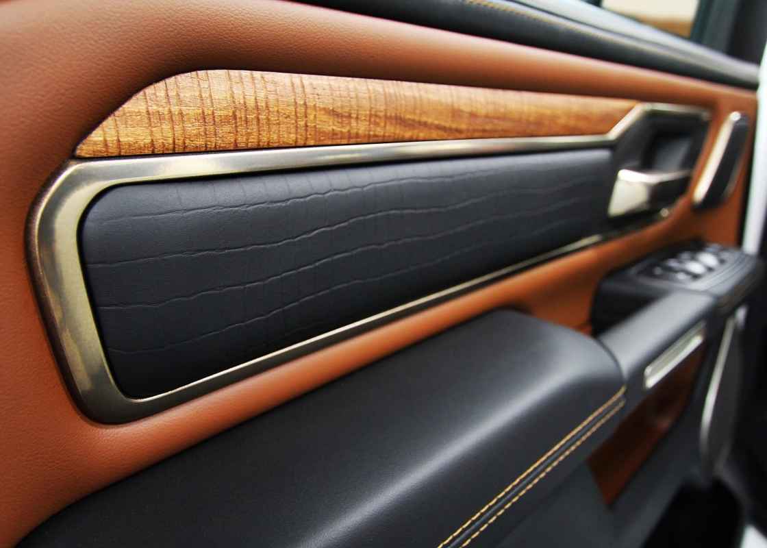 Likewise, the truck’s door panels – typically slabs of hard black plastic in most trucks -- sported the same pliable black leather-like material on their tops and more of the dazzling wood trim.