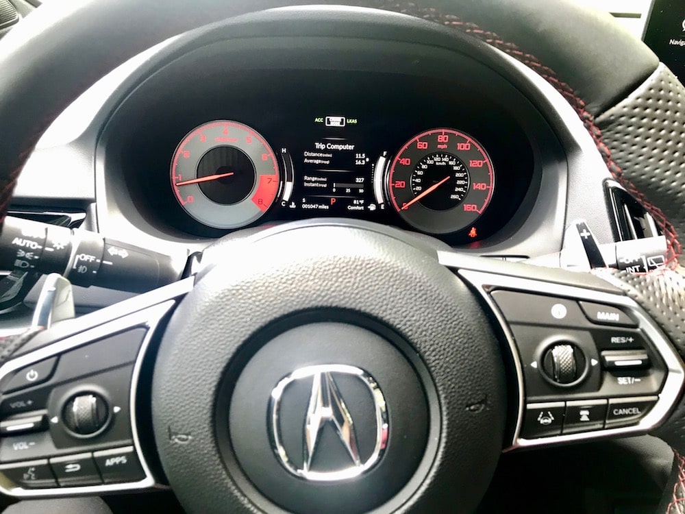 Developed and built in the U.S., the third-generation model debuted as an all-new 2019 model last summer. So what’s happened since its redesign? Acura says the nameplate set an all-time annual sales record of 63,580 units in 2018, a 24 percent increase over the prior year. Sales are also up currently about 10 percent year to date over last. As for who is buying the RDX, Acura also says new-gen RDX buyers are younger, more diverse, more highly educated and more affluent than those who purchased the previous generation model. The A-Spec specifically has double the number of under-45-year-olds than the rest of the RDX line. My A-Spec test vehicle features optional Super-Handling AWD, available on every trim level.