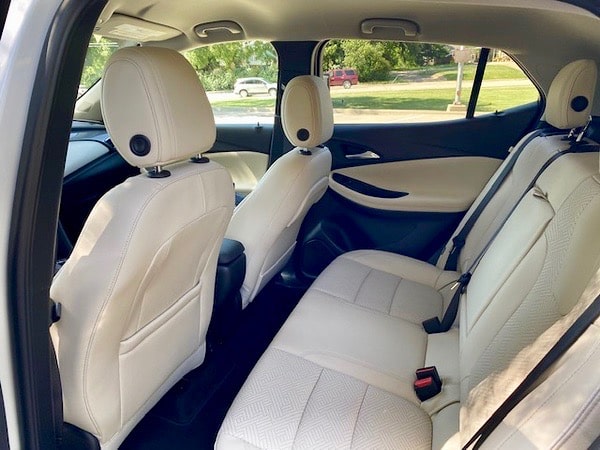 The interior of the Encore GX is well done with minimal stitching and a mix of soft-touch materials and plastic. Back seat head and leg room are good, and back occupants get USB ports and a power outlet, but no rear air vents, which is a problem.