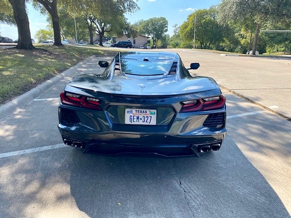 The exterior speaks for itself. It has beautiful lines, it is sleek, and it has air vents everywhere to feed the engine, most noticeable of which are on the sides, behind the doors. The C8 has 19” front wheels, and 20” back wheels, topped off with a rear spoiler and quad exhaust. People stare at this car wherever you go and people constantly film you going down the road. Many have said they thought it was a Ferrari and some think it looks like the Batmobile.