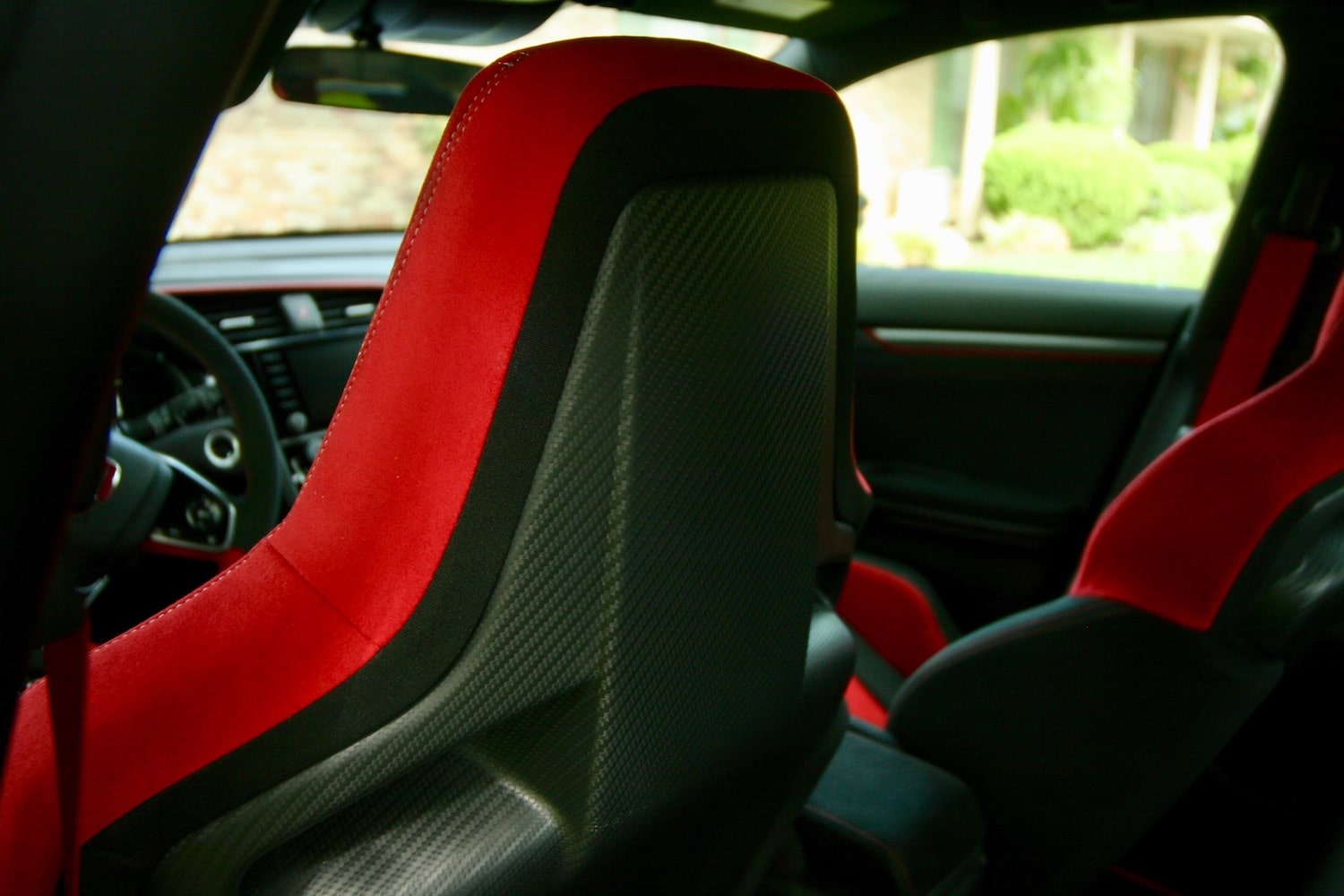 As you know, Civics in general are overly styled and the R compounds it with a small scoop fitted to its chiseled hood, long fake heat vents in the front fenders and 20-inch “dub” black wheels.
