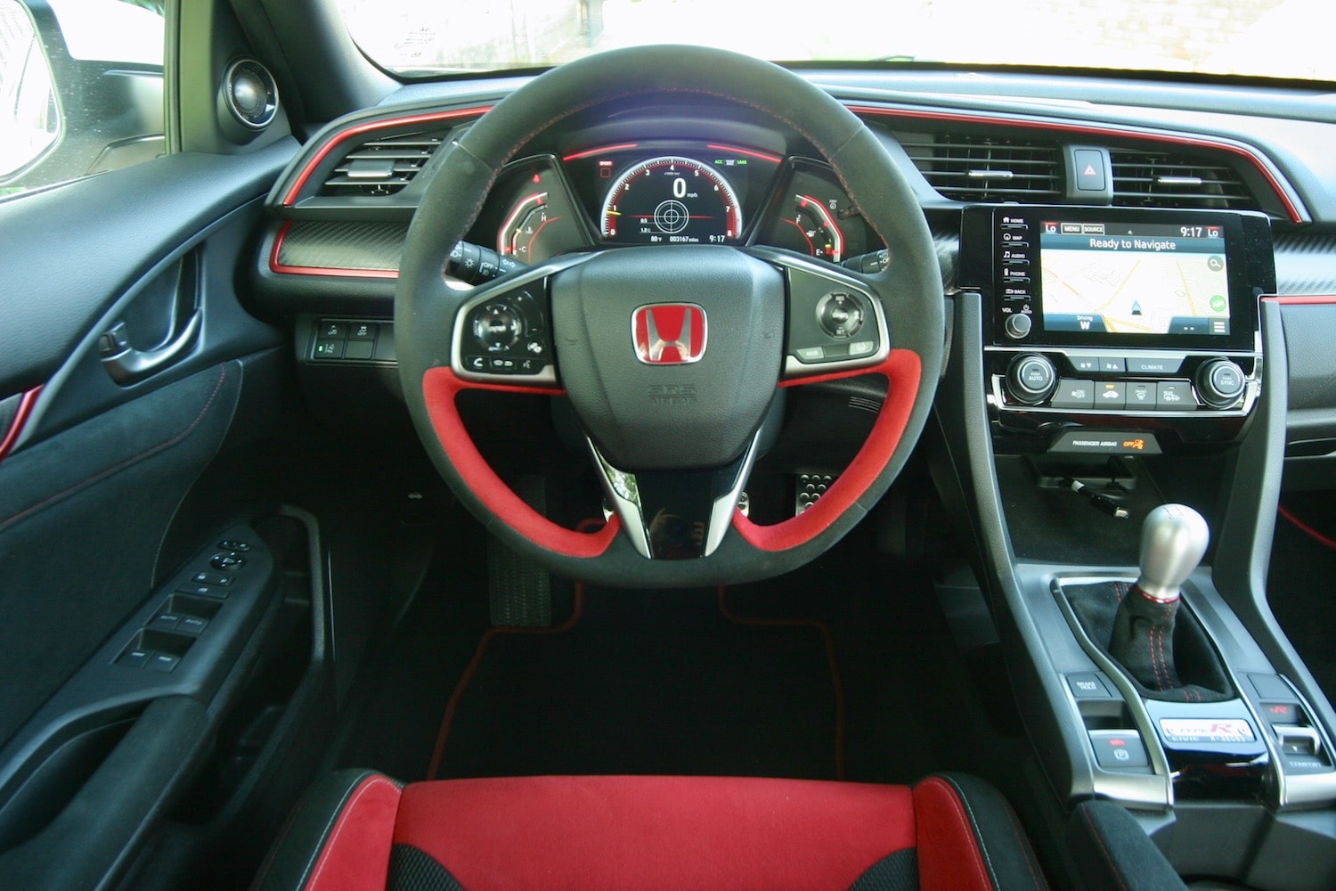 Pay some attention to it before you leave the house. Audacious Honda gives us an audio system in the R that must be tuned through the touchscreen – between gear-changes, wrestling with the heavy steering and keeping the hyper-Honda between the lines.