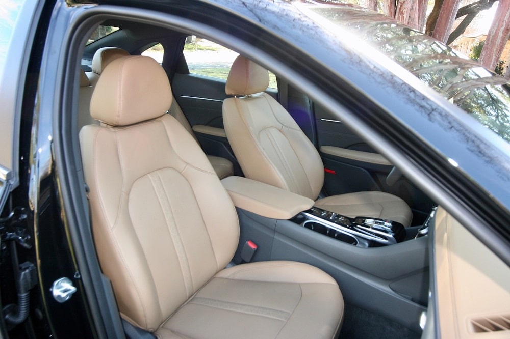 The Sonata lineup offers two powertrains. My model’s upgraded 1.6-liter turbocharged 4-cylinder makes 180-horsepower, slightly less than the base model’s engine, but it offers more torque (195 lb.-ft.). My model’s 180-horses offered nice acceleration from the get-go and it handles well, if not sporty. Both engines are mated to a smooth-shifting well-performing 8-speed automatic. The Sonata is offered as front-wheel drive only and the turbo engine delivers 31 mpgs combined.