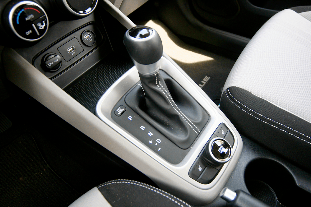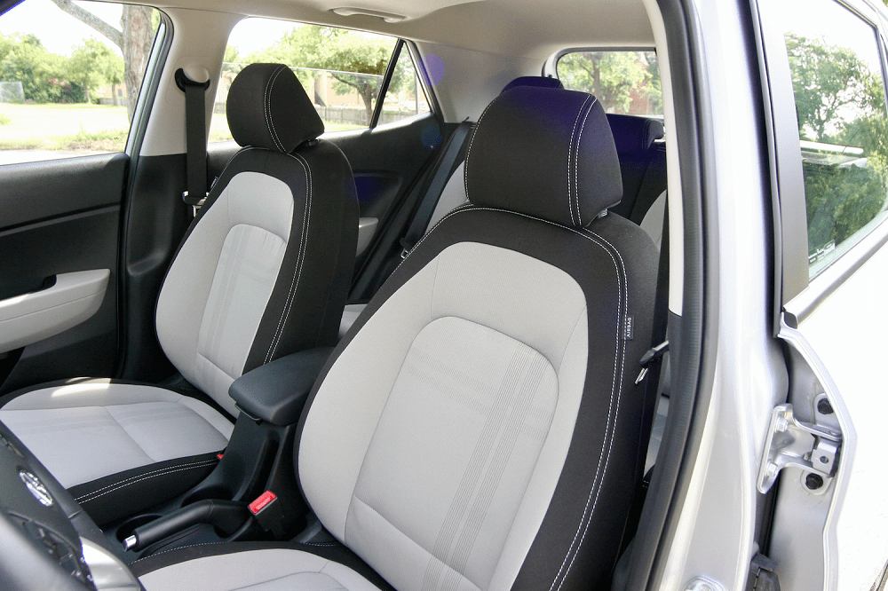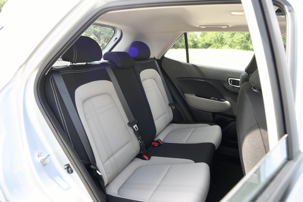 The Venue’s two-toned cloth interior isn’t luxurious, but it’s nicely designed and roomy with nice leg- and head-room in both rows. There are no power seats in the lineup. The manually operated front seats felt on the firmer side. As you’d expect at this price point, there is a lot of plastic throughout and it’s missing soft-touch door armrests. However, an optional package adds some nicer elements I appreciated like three-level heated front seats, a leather-wrapped steering wheel and gear shifter.