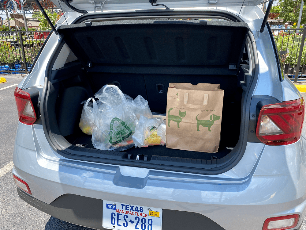 The Venue offers a 60/40 split and delivers the amount of cargo space you’d expect in a subcompact SUV. I had no trouble fitting my curbside pickup pet supplies back there along with some farmer’s market goodies.