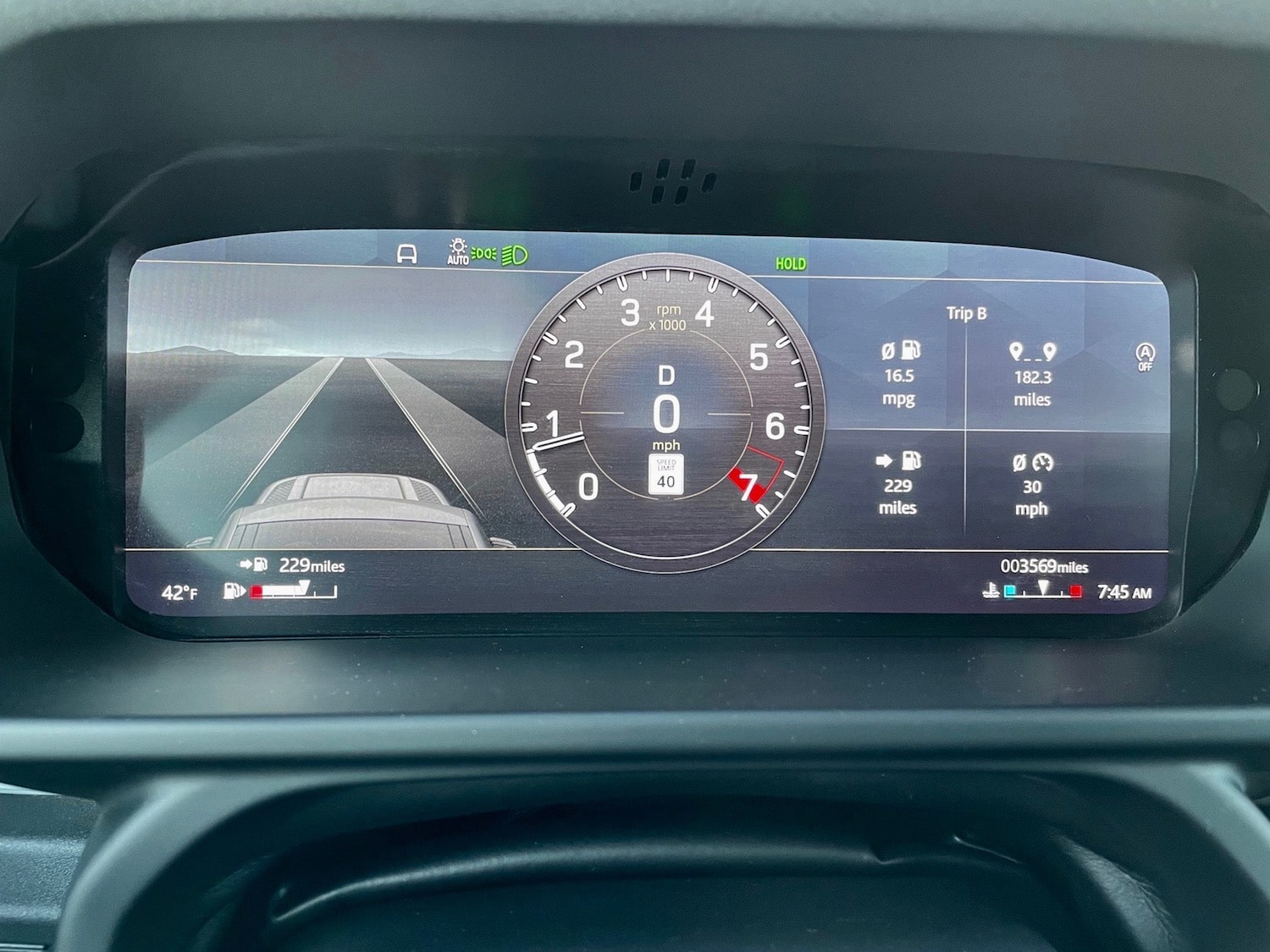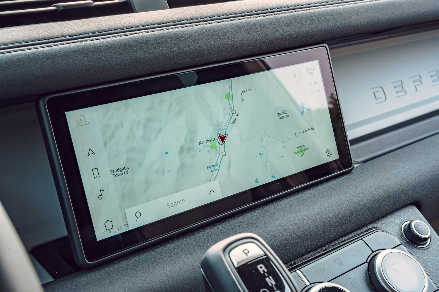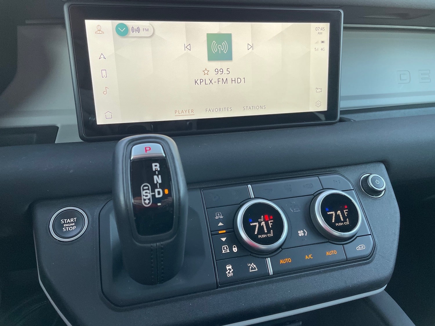 Just about everything you touch is rubber, and again this works for me. It looks nice, is soft to the touch, and it will be easy to clean. Center dash is a 10” screen that operates the sound system, navigation, Apple CarPlay, Android Auto, and the off-road capabilities. I am proud to report that the screen is much faster than I’ve experienced from Rover in recent years and is relatively simple to operate.