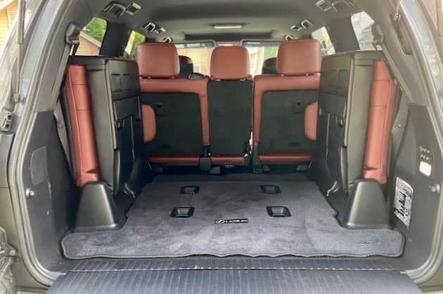 The third-row seats are different than I have ever seen. Instead of folding flat into the floor, they fold up against the sides of the vehicle. While unusual, this configuration really works for me. It is a two-step process to fold the seats down from the sides, then fold the back of the third-row seats up, but it is functional. With the seats out of the way, there is a cavernous amount of room.