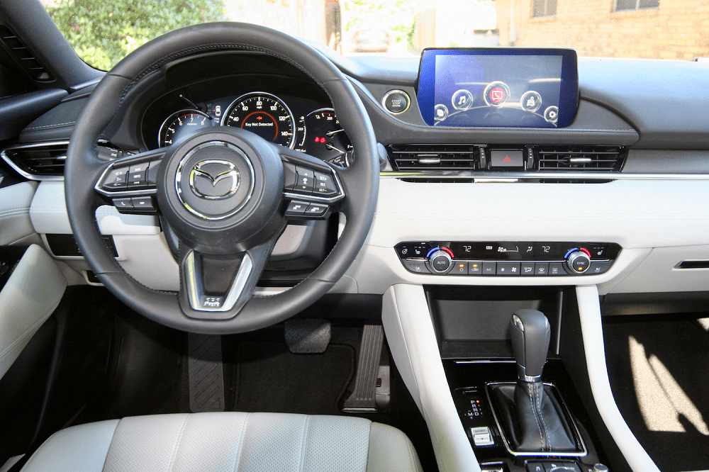 An 8-inch infotainment touchscreen hosts Mazda Connect with a rotary controller on the center console. The system supports standard Android Auto and Apple CarPlay but overall the graphics could use an update. While maps also look slightly outdated, they’re not terribly offending and can go full-screen. However, I was not expecting the fuzzy resolution of the backup camera. Certainly the Mazda6 deserves better. In terms of audio, the top three trims deliver a great sounding 11-speaker Bose sound system.